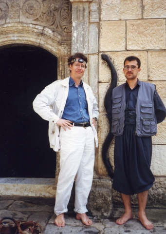 Spät’s website also set me straight on one thing about the black snake on the wall of the shrine of Yezidi divine Sheikh Adi in Lalish (visible on the photo here too). Nobody knows quite what it symbolizes, but Yezidi myths have it that a black snake led Noah and his ark of animals to safety. Yezidis had previously joked with me that this snake was kept black with shoe polish. According to Spät, however, it’s really done with the soot of the holy oil lamps…