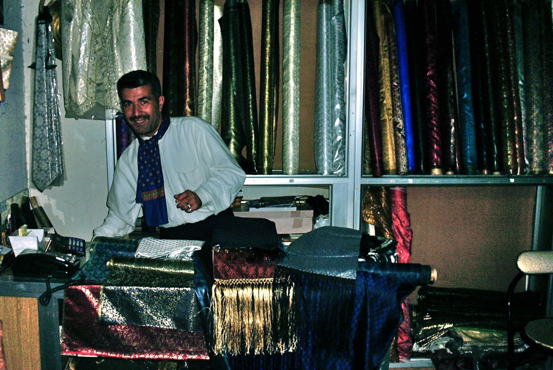 Indeed, in the months after September 11, the rhetoric from the United States toward Syria had grown threatening once again. I passed by a shop that sold elaborately woven Damascus fabrics, which I used to visit often as a student, and from which I bought the sparkling turquoise silk that my wife used to make her wedding gown. I remembered in 1980 how the bolts of cloth formed a rippling wall of golds, silvers, and scarlets. Now just a few rolls remained, and the Kurdish owner complained that his business was nearly dead. Tour agencies minimized their stays in difficult, corrupt Syria and the tourists no longer had time to shop.