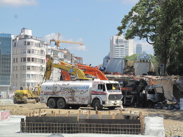 I also attach some images from the scene on Taksim Square and Gezi Park, mostly from Monday 3 June. The upbeat mood was much the same in most places in Turkey. The country is an amazingly resilient place that actually enjoys a good crisis – it’s normality some people have trouble with! Still, ordinary folk are almost competing to get things ‘back to normal’ wherever they can by cleaning up and fixing the few broken shopfronts.
